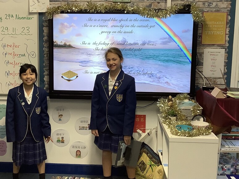 In English, we worked in small groups to craft 'metaphor poems' about different Lady Barn teachers. We used our speaking and listening skills to exchange ideas and decide upon the perfect metaphor descriptions for each teacher, then utilised dictation technology to get our finished pieces typed up. Keep an eye out for some of the poems appearing soon on the screens around school! We wonder if you will be able to work out which teachers are featured!