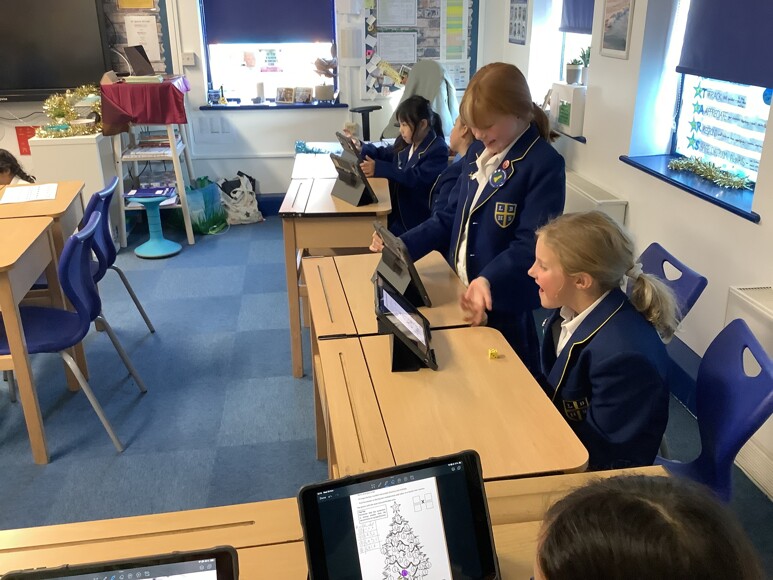In Maths, we practised our mental multiplication of fractions with a fun dice game. We also had a go at being number detectives with a missing numbers problem, where we had to place digit cards correctly to solve a mystery long multiplication!