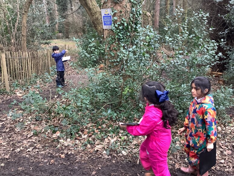 In the woods this week, 1J went out to learn about how the season of Winter changes. We noticed that lots of trees and plants lose their leaves but others did not! We then learnt that those trees that kept their leaves and remained green were called, 'evergreens' and that trees that lose their leaves at the end of growing season are called, 'deciduous.' 1J then went to do their own woodland observations by recording and sketching their findings. Science in the woods....brilliant!