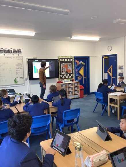 The students actively participated by inputting data and crafting a corresponding chart, which they seamlessly integrated into a keynote presentation. To conclude the session, the students added a live video to their keynote, delivering real-time facts about each mountain as the information unfolded on the screens.