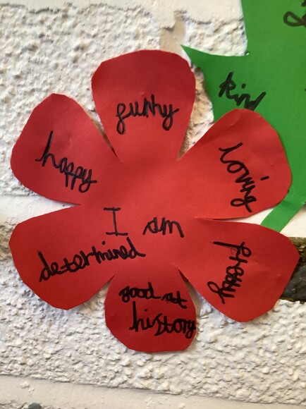 They had great ideas and were able to list many things that made them special, as well as considering things they can do to help others. With all their ideas shared on flowers, butterflies and leaves, they have brought the tree to life!