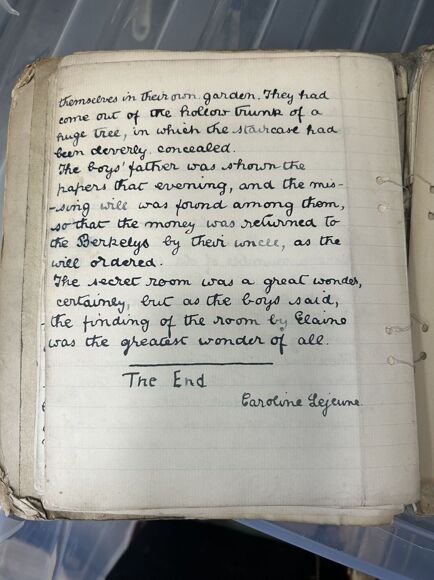 We found that Caroline Lejeune was one of the editors of the Lady Barn Gazette, a forerunner of School Days. These beautiful, handwritten books date from the early 1900s and include stunning paintings and sketches by the children, along with accounts of school life and the wider world. Caroline became a renowned writer and film critic in later life so it was a delight to find one of her early stories within one of the books we found.