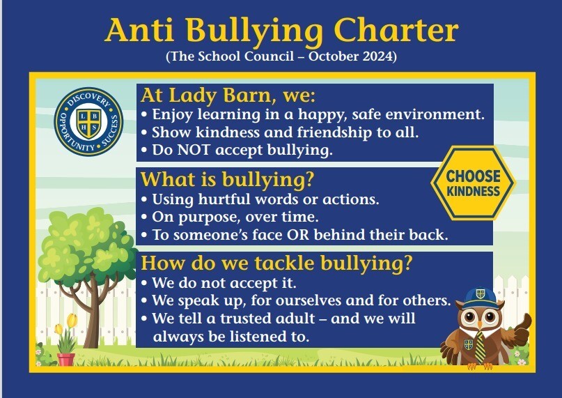 Anti-Bullying is not just for one week of the year, for us it is an year-round activity. In fact, it was the first topic on the new School Council's agenda. They have successfully reviewed the Anti-Bullying Charter and have published a refreshed 2024 version, which can be seen displayed throughout the school. The council have also invited everyone to enter an anti-bullying poster competition to demonstrate our opposition to bullying. Everyone who submits an entry will have their work displayed and a selection will receive a prize.