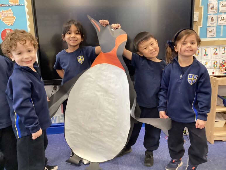 Each class made some life-sized polar animals such as a penguin, snowy owl, arctic fox and lemming to practise measuring skills. Using everyday objects like k-nex sticks, magnetic tiles, cubes and hands, the children found out the height of each animal. They learnt the important steps such as starting at the bottom, keeping the line straight, not leaving any gaps between the units of measure and going all the way to the top. It was interesting to see the length of each animal and the children (and teachers!) were amazed how tall some of the animals are.