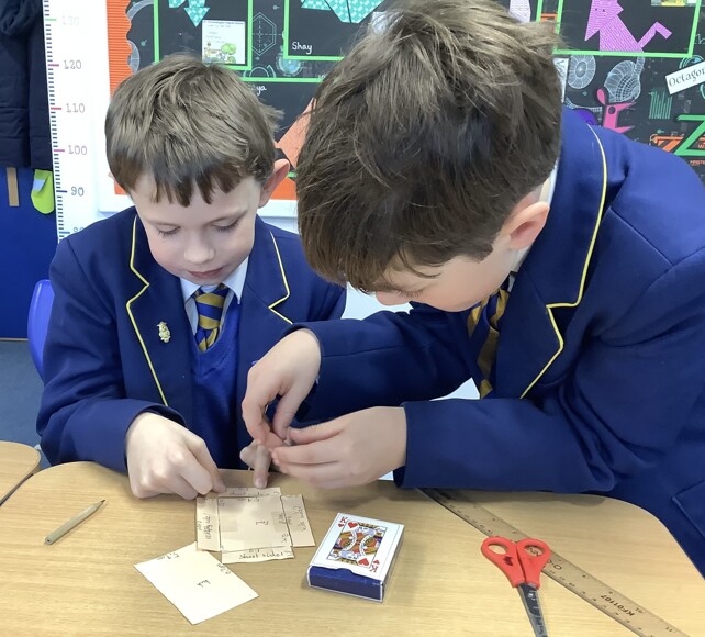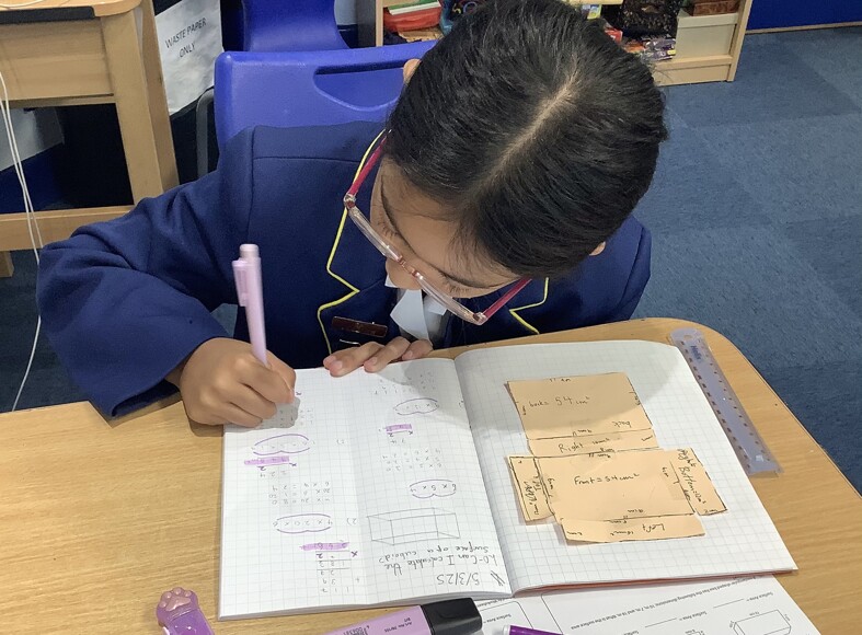 Prep 5 have been investigating surface area in Maths. We have looked at the net of a cuboid, calculated the area of each face and totalled our findings. After some practical investigation to create a cover for a box of playing cards, we established a method for calculating the surface area of any cuboid. We produced some fabulous work to explain what we did. I wonder how they will calculate the surface area of a Toblerone box, next week?!