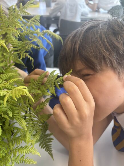 Prep 5 were fascinated by a fossilised fern and learnt how ferns reproduce through spores. They also discovered how gardeners clone plants – each pupil took a cutting from a mint plant to grow back at school.