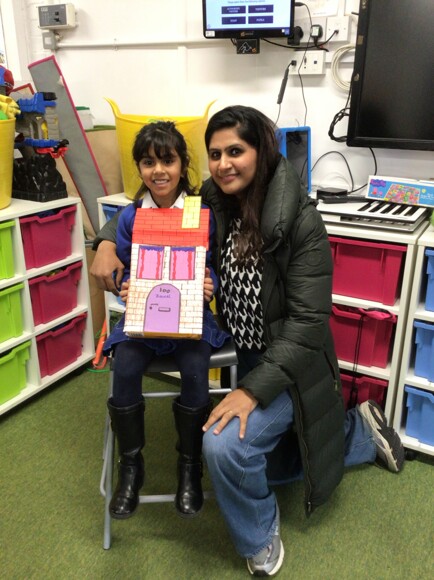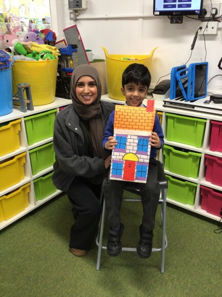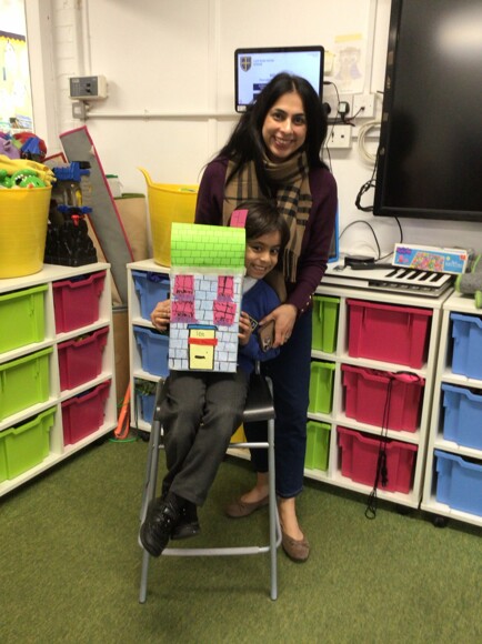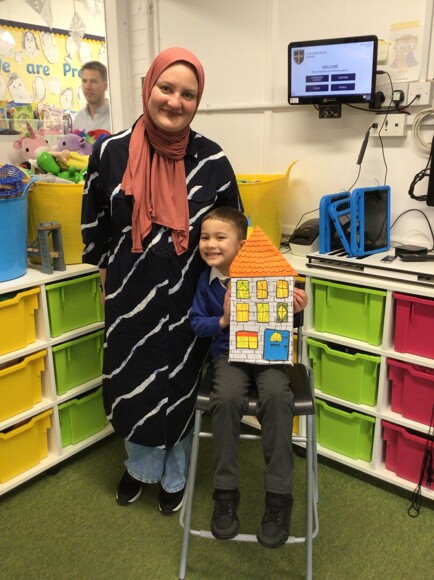 Parents were invited to stay and work alongside their children, and together they enjoyed making model houses with family members. This was a lovely opportunity for the children to work collaboratively and take pride in creating something together.