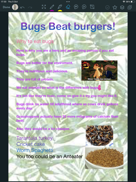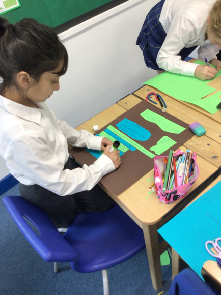 Prep 5E has been reading 'The Explorer' as part of their English lessons, a story about four children who are stranded in The Amazon Rainforest. From this, they have been busy creating a range of posters persuading people why they should consider eating insects to help the environment, as well as writing instructions to build a raft. They have thought carefully to use ambitious vocabulary, alliteration, and rhetorical questions to make their posters engaging, including 'Bugs Beat Burgers' and 'Do you want to be an adventurer?'.