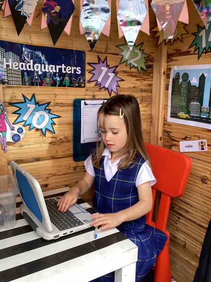 The children are all having a SUPER start to Reception! They are thoroughly enjoying their new topic ‘superheroes’ where they have been learning all about what makes a superhero special! After sharing our new class text ‘Superhero ABC’, the children discussed ideas for their very own superheroes, thinking of names, key features and what their hero may look like. The children shared some wonderful ideas and invented some brilliant names, here are a few of our favourites; ‘Muscle Man,’ ‘Goo Girl’ and ‘Wing Woman’. Whilst exploring the continuous provision areas, the children have also encountered many exciting superhero activities. They have brought their villain-chasing stories to life, by dressing up and having lots of imaginative fun, role playing in our superhero headquarters shed. They have been working on their fine motor skills by making superhero bead bracelets, power cuffs and de-tangling fellow superhero characters from webs, and have made lots of super craft too.